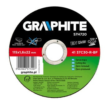 Cutting disc for stone 230 x 3,2 x 22 mm 42 37C30-R-BF GRAPHITE stone cutting disc allows to greatly reduce cutting time thanks to advanced design and reduced thickness. Product is compliant with EN12413, which ensures high safety at work.