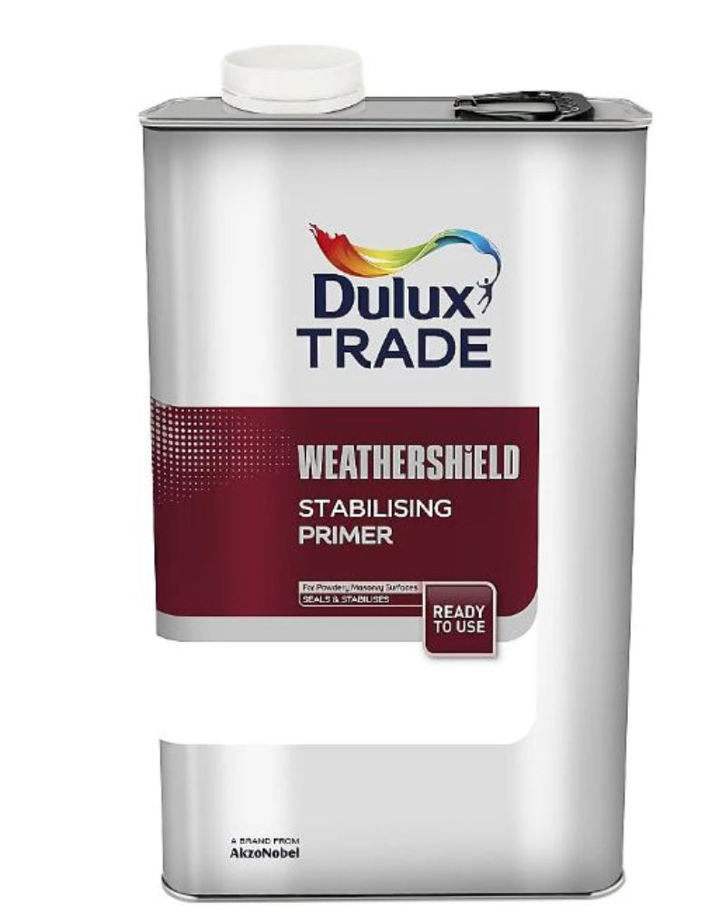 Dulux Trade Weathershield Stabilising Primer is a solvent-based primer specially formulated to seal unstable areas which remain powdery and chalky after the surface has been thoroughly prepared for painting with Weathershield Masonry Paints.