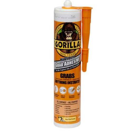 Gorilla Heavy Duty Grab Adhesive is the all-purpose way to bond building materials. It’s so versatile, it grabs virtually anything instantly. Use it indoors or out, even underwater, for an extra-tough bond that’ll last.