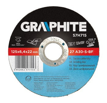 Grinding disc for metal GRAPHITE grinding disc for metal features high resistance to damages during work thanks to triple layer of reinforcing meshes. Product is compliant with EN12413, which ensures high safety at work.