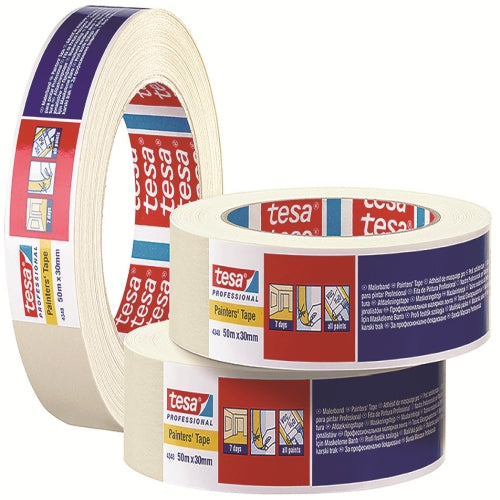 This standard Tesa Painters Tape 4348 features a slightly creped design and tear-resistant materials. Its natural rubber adhesive provides strong sticking power, making it ideal for indoor painting projects. The tape is easy to tear and can be used for up to 7 days, after which it can be easily removed. Its exceptional adhesive strength allows for precise edges during painting and is a trusted choice for professional painters.