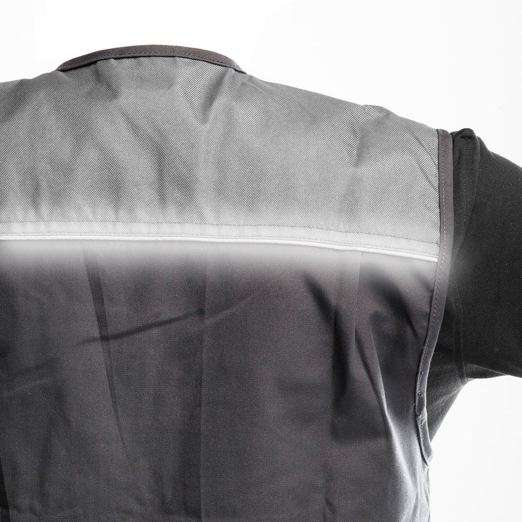 Work vest, 35% cotton, 65% polyester, 267 g/m2, Oxford textile reinforcements, reinforced pockets, reflective area on back, CE, EN340